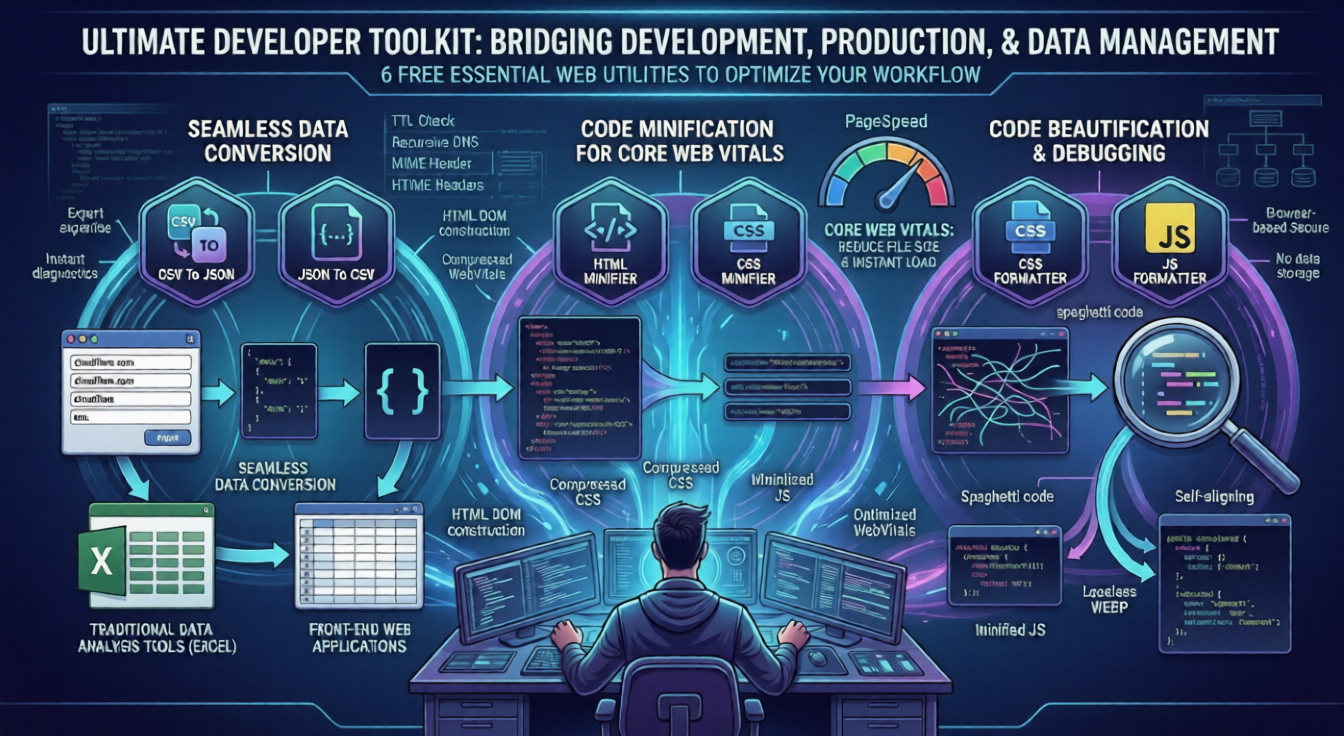 A developer's time is their most valuable asset. Stop relying on clunky IDE plugins or writing custom scripts just to handle basic formatting and conversions. These 6 utilities are lightning-fast, highly secure, and process everything directly in your browser without storing your sensitive data on external servers.